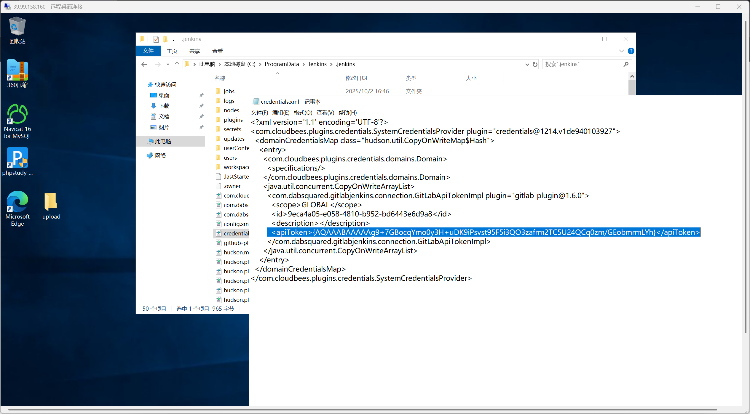 在配置文件credentials.xml找到明文