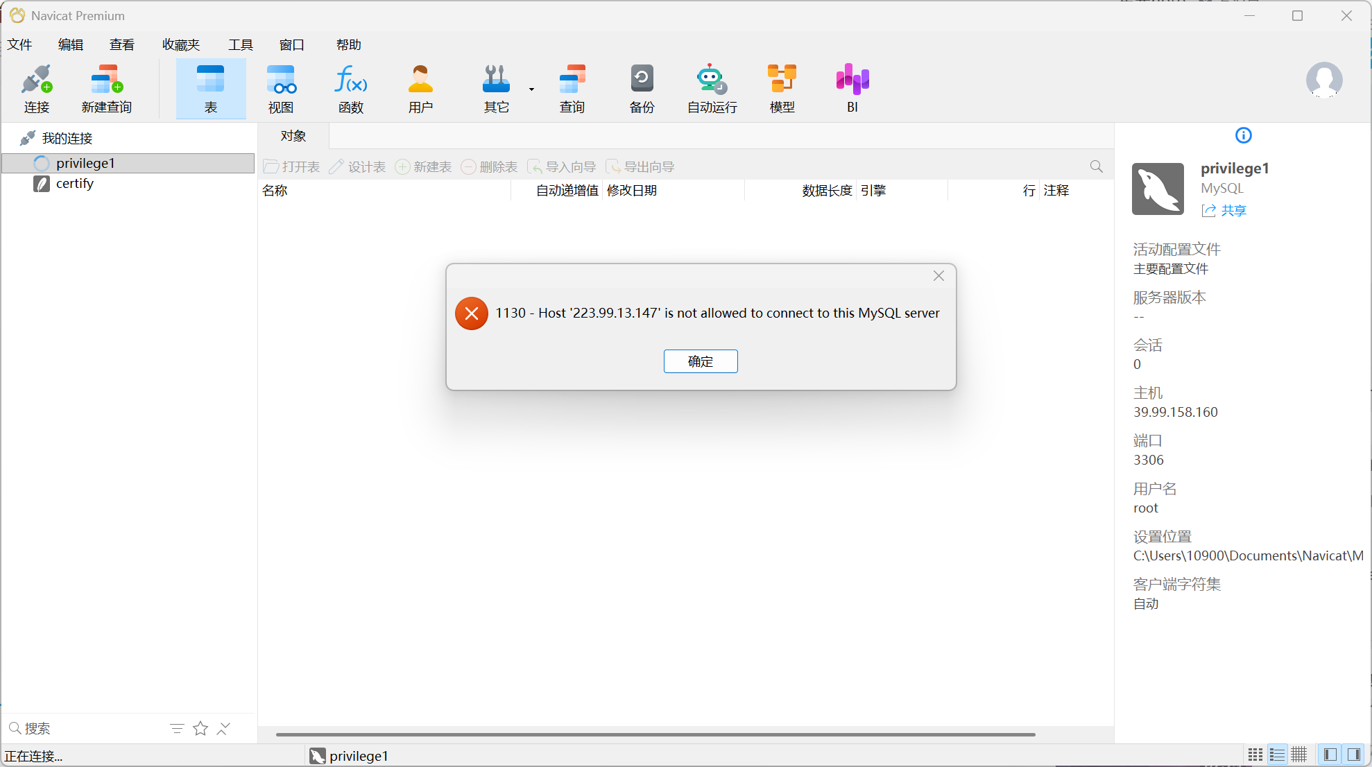 读取一下www.zip备份文件,先在config.php里面找到了数据库的账号密码,尝试navicat连接,但是限制只能本地连接