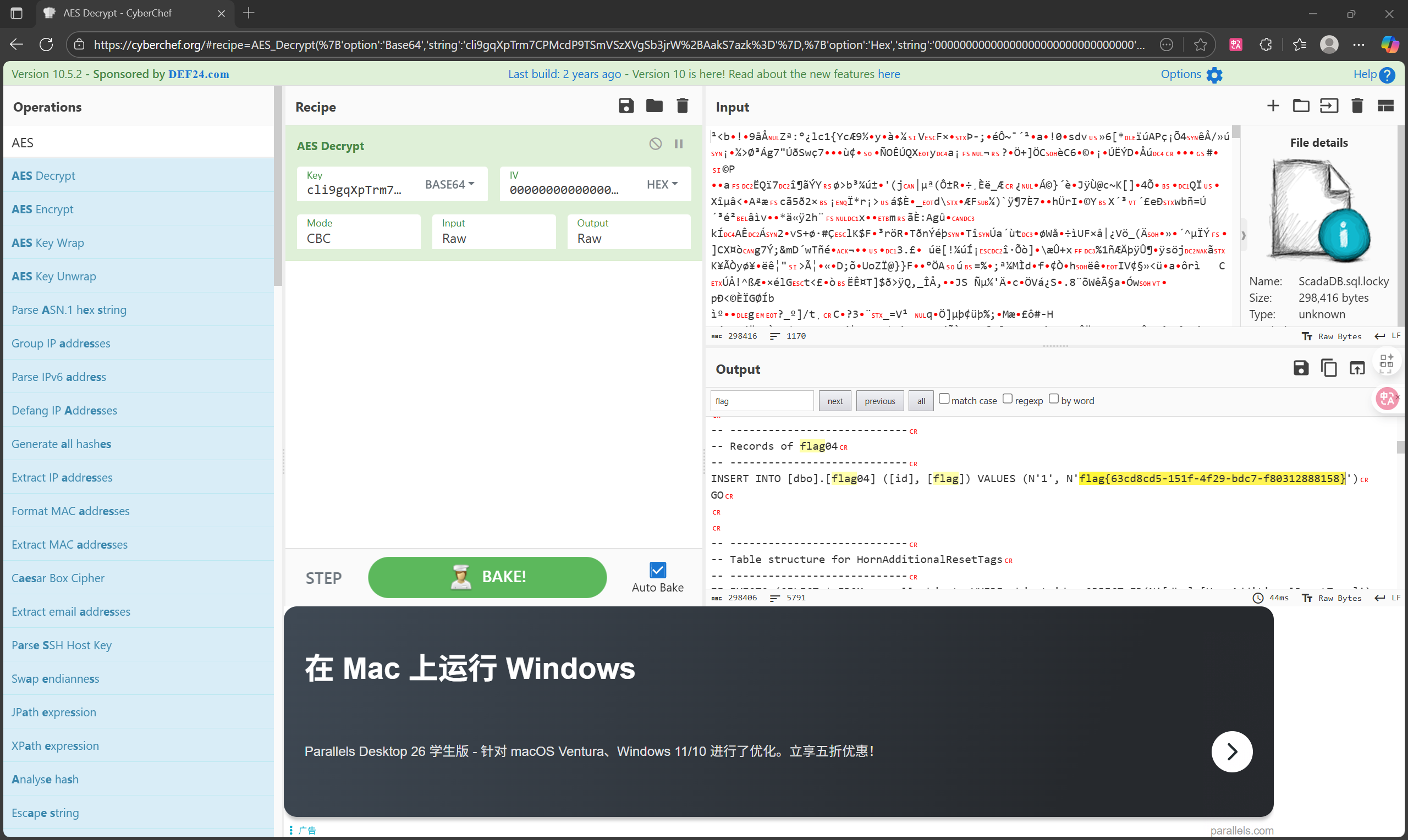 在桌面上发现ScadaDB.sql.locky,并且题目附件里给了privateKey和encryptedAesKey,在C盘找到Lockyou.exe,因此现在需要解密ScadaDB.sql.locky