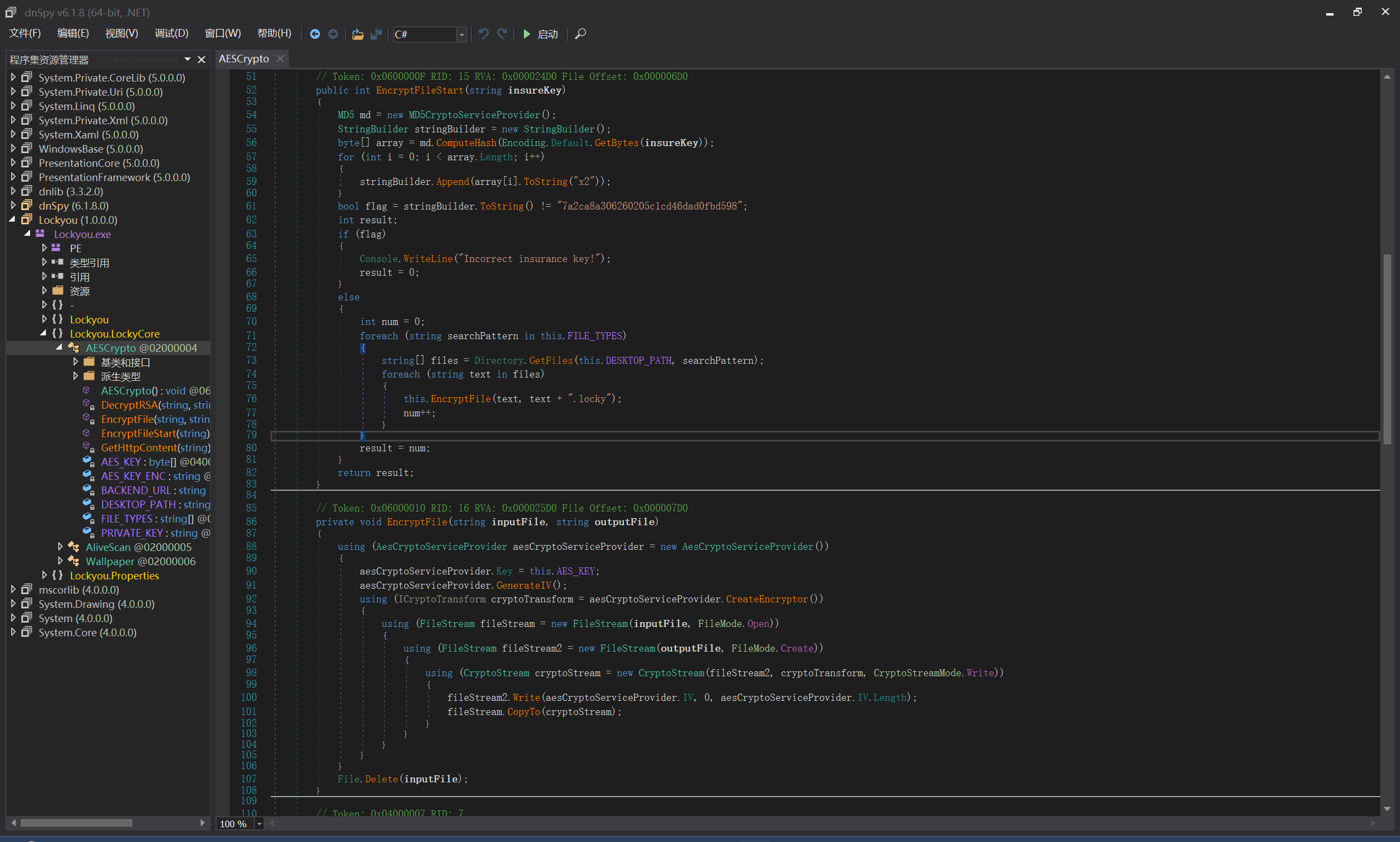 用dnSpy对exe进行反编译,找到加密逻辑,需要秘钥